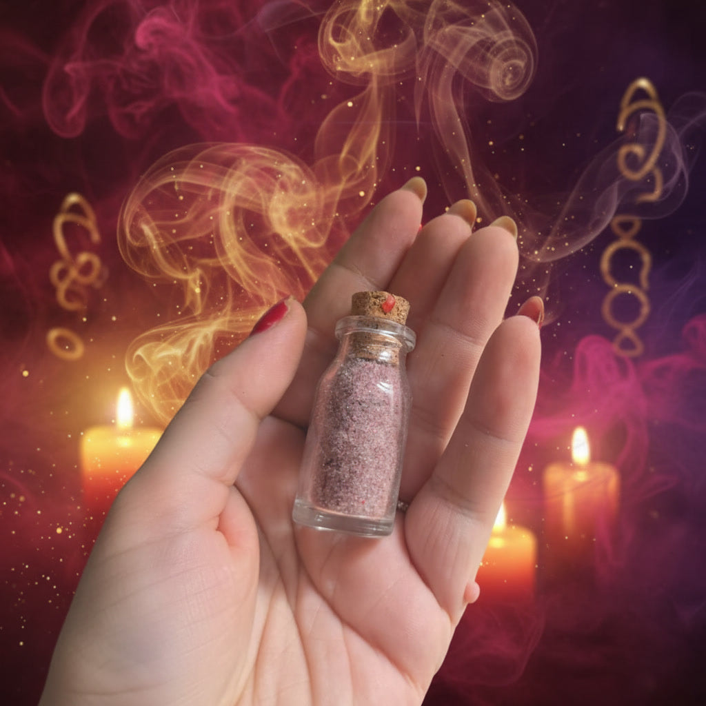 Ao ser diluído em água morna, o pó libera energias preparadas e consagradas que auxiliam na limpeza emocional, na abertura do campo vibracional e no fortalecimento da intenção de reconexão e aproximação amorosa.